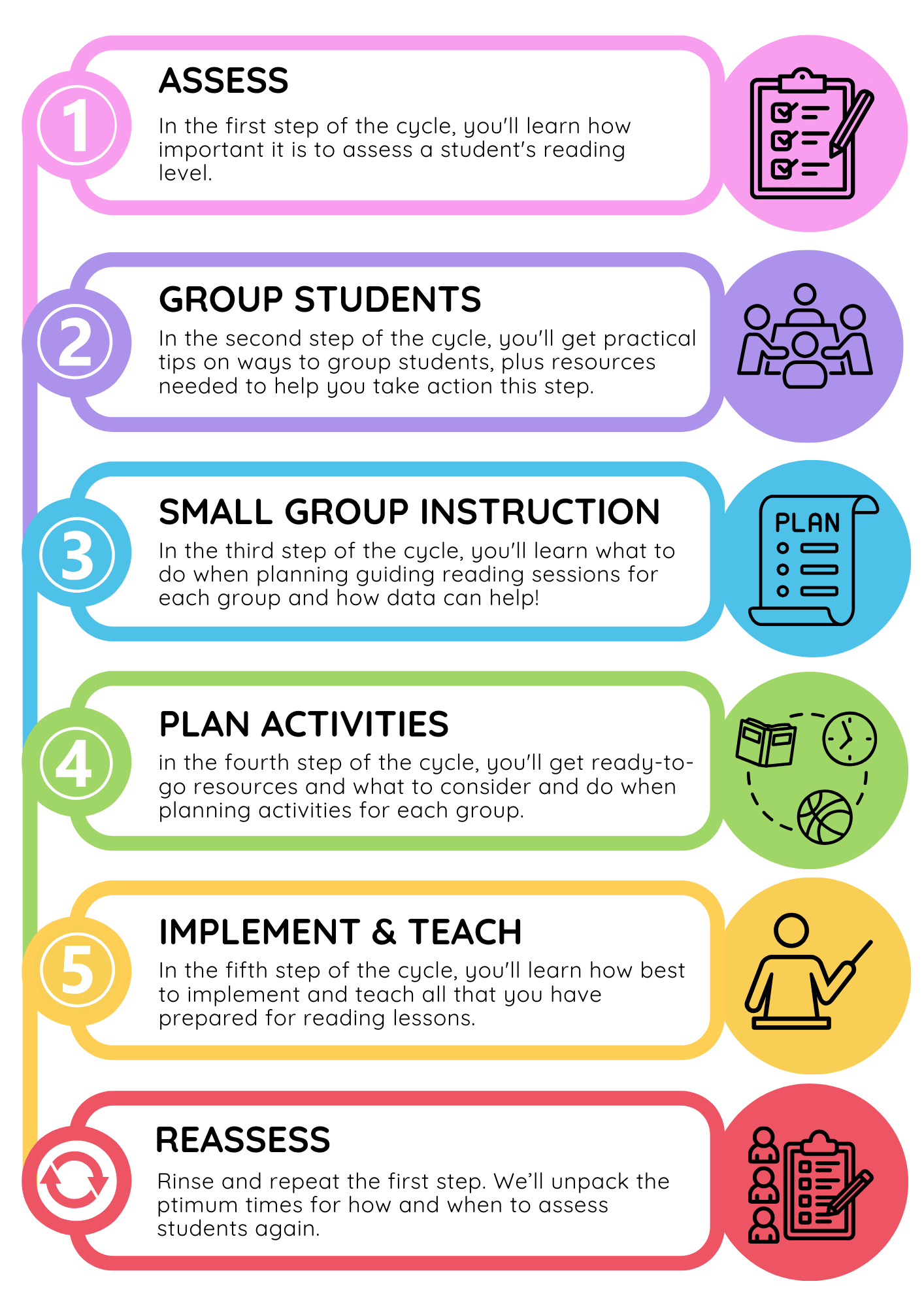 ✔️ CLEAR PLANS: Learn actionable steps for assessing, grouping, planning and explicit teaching during reading rotations
