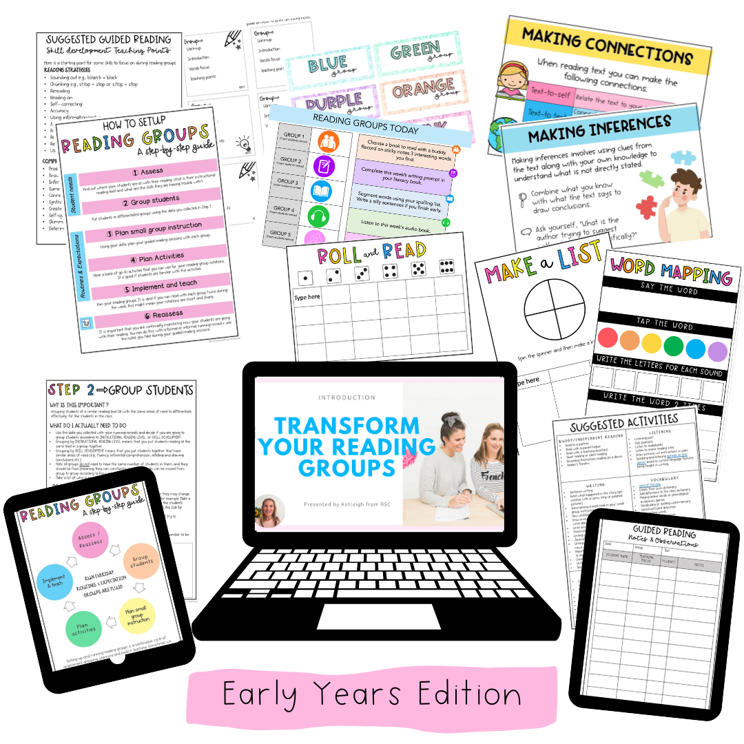 Transform Your Reading Groups is a digital course you could complete within an hour outlining our 5-step system to efficiently organise reading groups. This course is for primary school teachers (K-6) who want to simplify reading group setup.