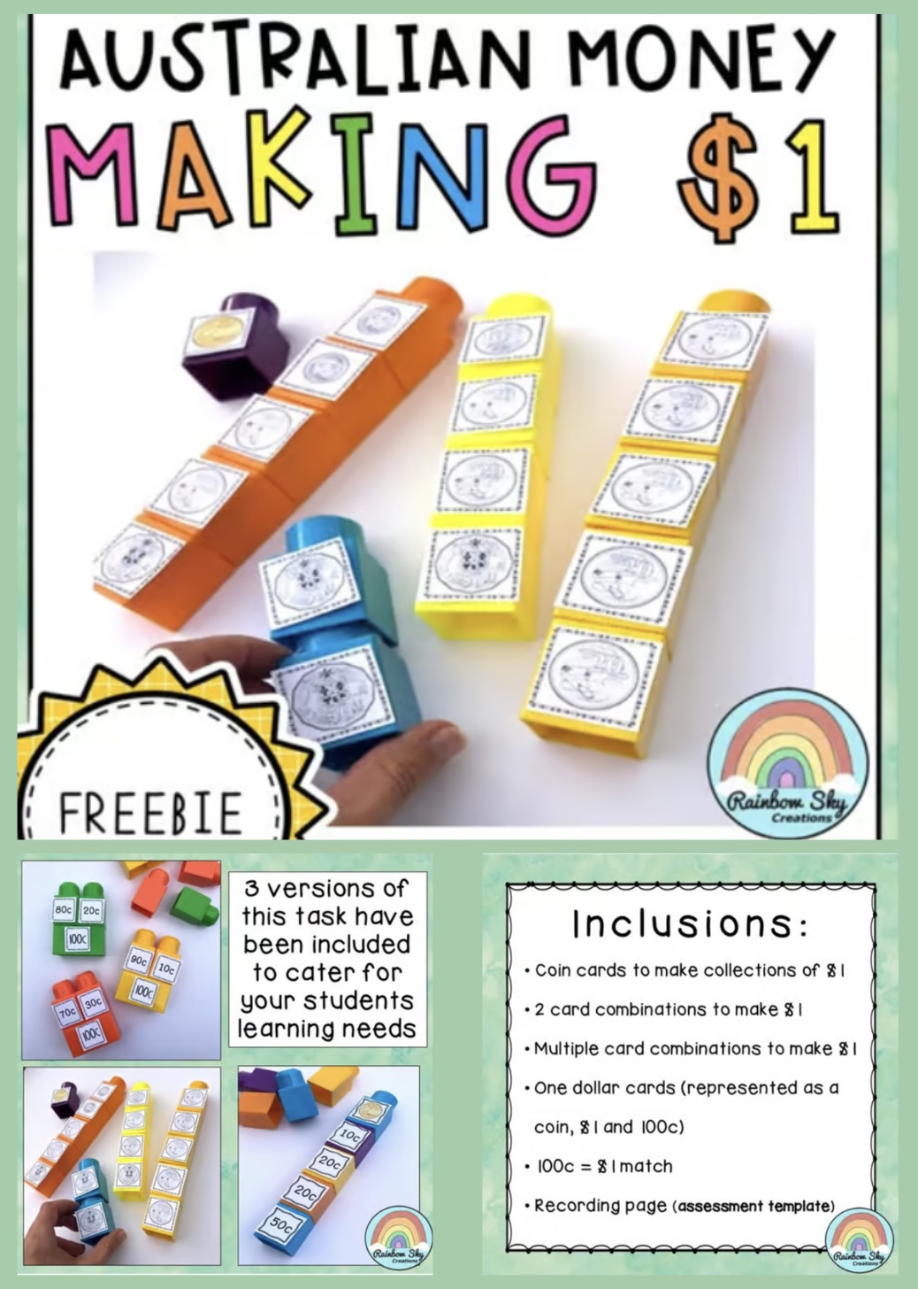 This pack was designed to build proficiency, fluency and confidence in students creating money collections and combinations to $1.